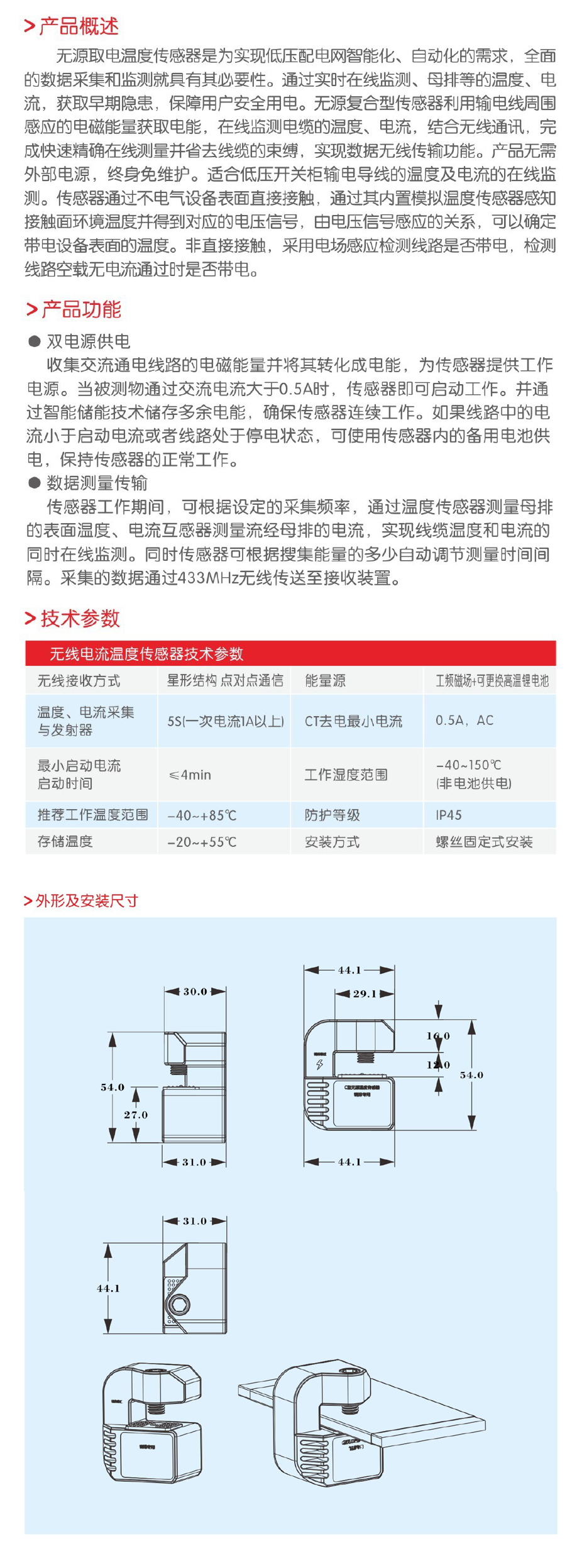 SEN-WUU无源取电温度传感器 母排专用